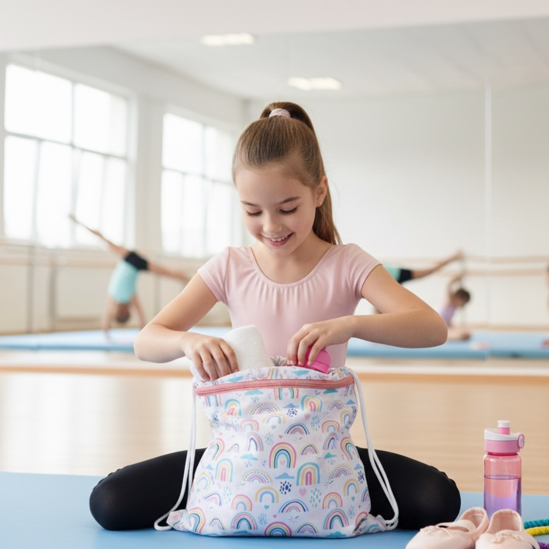 Perfecta para llevar la muda de las clases extracurriculares de gimnasia, baile, ballet, natación, futbol, taekondo, tenis, lo que sea!
