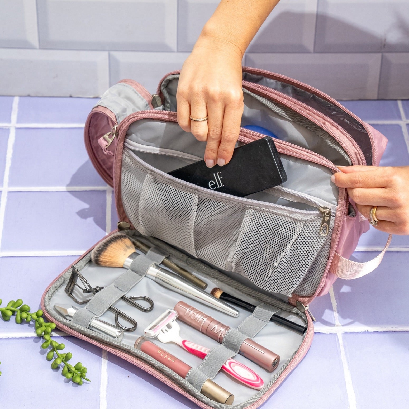 Ya sea para las cosas de mamá o de los niños, este neceser ultra grande, acolchado e impermeble, transporta todos los artículos de baño en un mismo estuche perfectamente ordenados en sus 3 compartimientos.